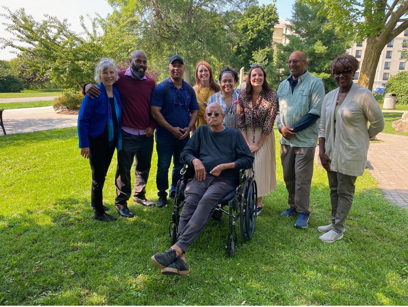 Second row: Judith Wellman, Saladin Allah, Bill’s nephew, Sara Capen, ?, Ally Spongr DeGon, Ken Johnston, ?