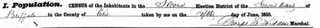 Two marshals captured Patrick Sneed in 1853, Joseph K. Tyler and someone listed only as as Mr. Boyington. Tyler is listed in the 1855 NYS census as a “Dep. Marshal,” age 41, born in Connecticut, living in Buffalo for 19 years, married to 36-year-old Susan A. Tyler, born in Chenango County, NY, living in Buffalo for 13 years, and their 13-year-old son, Joseph, and Ann Flanery, Irish-born servant (can’t read her age), living in Buffalo for four years. He is probably the “constable from Buffalo” mentioned in Sneed’s own detailed account.